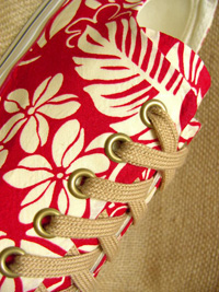 オーダーメイドのスニーカー(※リンク切れ)なんですが、ハワイアンな柄でつくってくれるんです。
